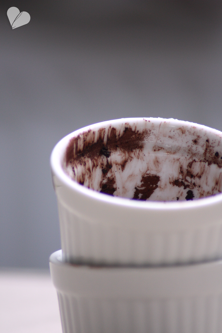 3. Die Förmchen zuerst mit etwas Butter einfetten und danach mit dem Kakao bestäuben.